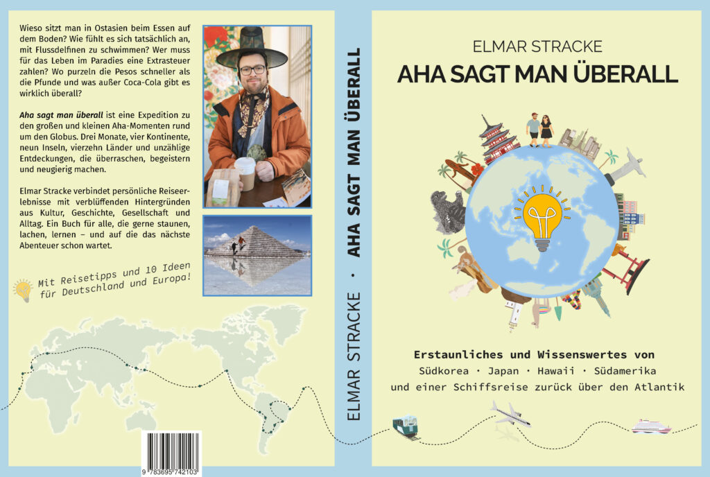 In diesem Buch nehme ich die Leserinnen und Leser mit auf eine dreimonatige Weltreise voller Aha-Momente über vier Kontinente, über 10 Inseln und durch 14 Länder. Entstanden ist kein klassisches Reisetagebuch und kein nüchterner Reiseführer, sondern ein erzählendes Reisesachbuch, das persönliche Reiseerlebnisse mit überraschenden Alltagsbeobachtungen, Fakten und Hintergründen verbindet.
